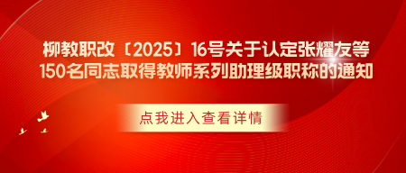 柳教职改〔2025〕16号关于认定张耀友等150名同志取得教师系列助理级职称的通知