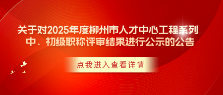 关于对2025年度柳州市人才中心工程系列 中、初级职称评审结果进行公示的公告
