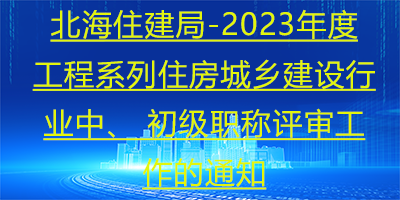 北海市住房和城乡建设局职称改革工作领导小组办公室关于开展2023年度北海市 工程系列住房城乡建设行业中、 初级职称评审工作的通知