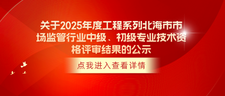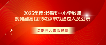 为进一步增强我市教师系列职称评审工作透明度,保证职称评审工作的真实性、公平性,让评审工作接受社会监督,根据自治区职改办2025年度职称评审工作部署,按照《自治区教育厅关于开展2025年度中小学教师职称评审工作的通知》(桂教教师〔2025〕46号)、《自治区教育厅关于开展2025年度中等职业学校教师职称评审工作的通知》(桂教教师〔2025〕49号)等相关文件规定,现对2025年度北海市教师系列中级职称评委会评审结果进行公示,公示期为本公告发布之日起七日。
