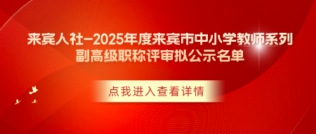 根据来宾市人力资源和社会保障局《来宾市人力资源和社会保障局关于做好2025年度全市职称评审工作的通知》(来人社函〔2025〕87号)的要求及评审有关规定,现对2025年度来宾市农业系列中级、初级评审委员会评审结果进行公示,公示期为本公告公布之日起5个工作日。