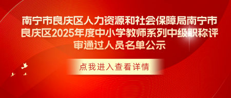 南宁市良庆区人力资源和社会保障局南宁市良庆区2025年度中小学教师系列中级职称评审通过人
