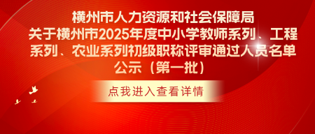 横州市人力资源和社会保障局关于横州市2025年度中小学教师系列、工程系列、农业系列初级职