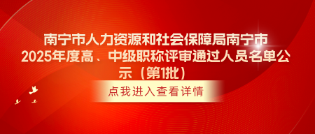 根据市职改办《关于做好2025年度南宁市职称评审工作的通知》(南职办〔2025〕1号)要求,为确保职称工作公平、公正、公开,现将2025年南宁市工程系列初级专业技术资格评审通过人员名单进行公示,公示期为5个工作日(2025年12月1日至2025年12月5日)。